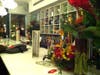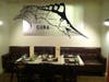 Gone is the exterior wood paneling, replaced by floor-to-ceiling glass windows and potted foliage. Inside, the entire space has been gutted and re-built from the floor up. First you walk into the bar area, with a white granite bar-top, green palm frond motif on the walls, and huge arrangements of exotic flowers. In the back is a small private lounge area with leather couches and an oversized painting of a marlin as a map of Cuba. To the side is the main dining room, with white tables, deep mulberry and green accents, and a very modern fireplace built into the wall. In all, the design is beautiful.