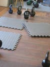The class started out with 10 minutes of cardio drills, including squat jumps, jogging around the room, hopping on one foot, and other calisthenics. From there we moved on to muscle-training stations. Using medicine balls, kettle bells, ropes and a step, we worked just about every muscle group through five different stations. The final segment of the class was suicide sprints. We were broken into pairs, and whoever was not sprinting was either doing tricep dips or wall sits. The exercises change everyday, but the major muscle groups are always worked, and Cabral always incorporates endurance and aerobics.