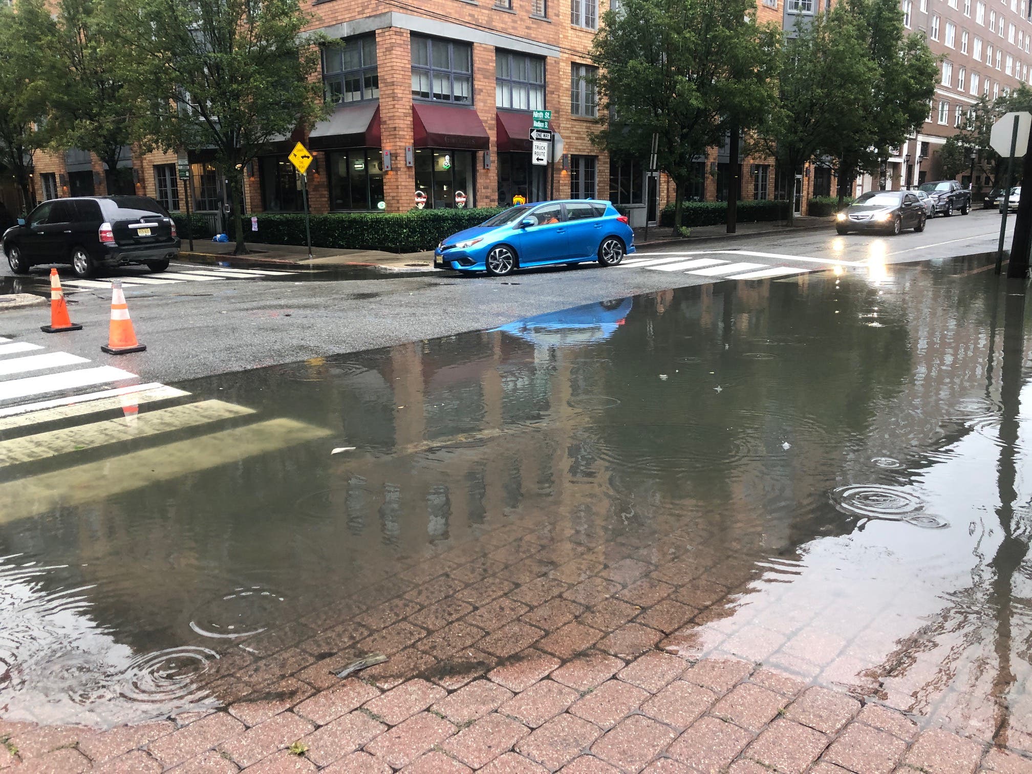 Other parts of Hoboken also flooded, including lower Clinton Street, where one dad posted video on Twitter asking a young child why an officer was apparently directing drivers toward flooding.