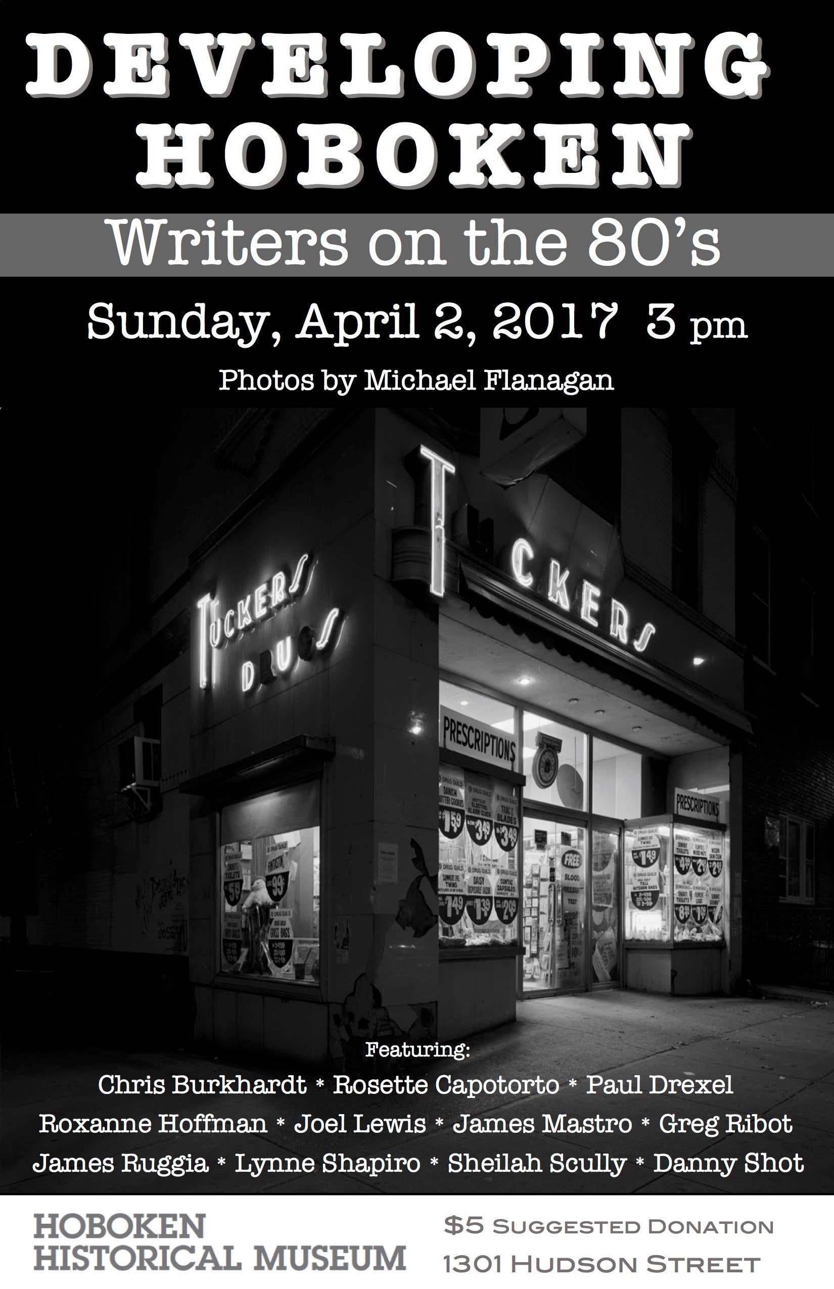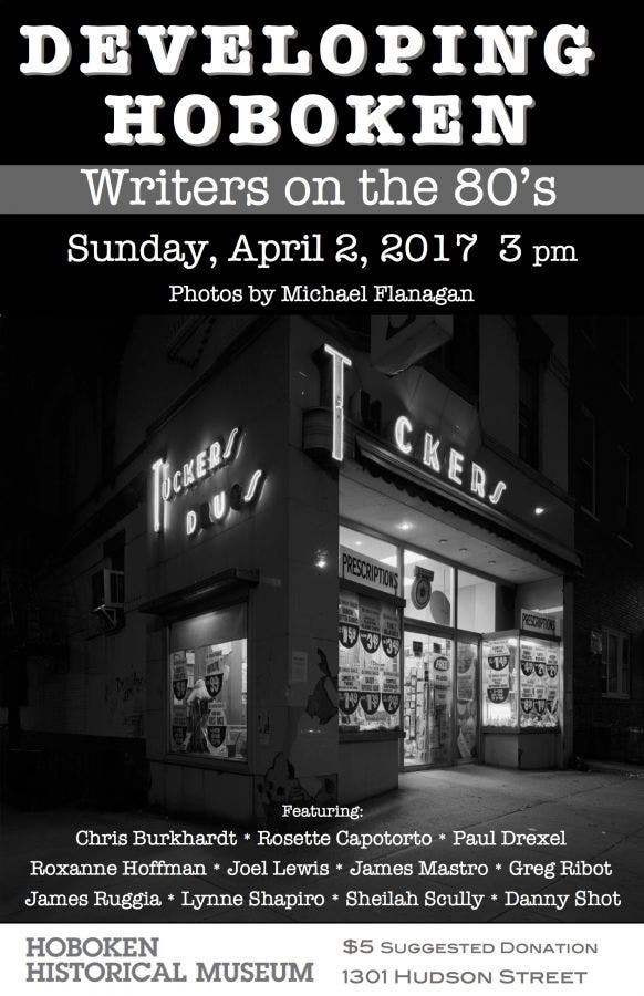 From the Hoboken Museum: Blending history, art and the spoken word, a group of contemporary writers, artists and musicians will gather at the Hoboken Historical Museum on Sunday, April 2, 3 p.m., for an event inspired by the photographs of Michael Flanagan, currently on display in the Museum’s main gallery. All of the artists lived in and around Hoboken in the 1980s, and each was invited by the Museum’s poet in residence, Danny Shot, to choose one or two photos from the exhibition, "Hoboken People & Places, 1976-1994: Photographs by Michael Flanagan," and write a piece to read aloud.