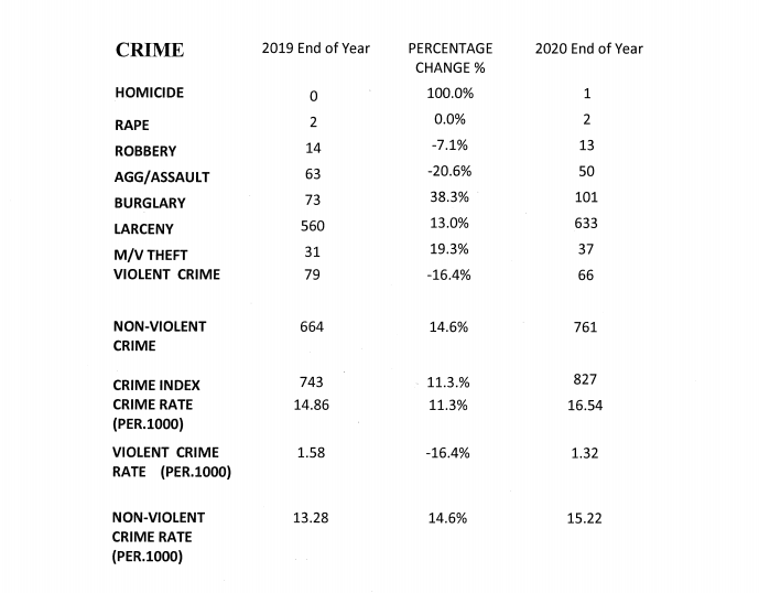 Violent crime is down, but theft is up, said Chief Ken Ferrante. He attributed it in part to the COVID-19 pandemic and recidivism.