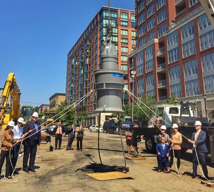 On Friday, Hoboken Mayor Dawn Zimmer joined North Hudson Sewerage Authority (NHSA) Executive Director Richard Wolff and other city officials for a ceremony to lower and secure the pumps for the H-5 wet weather pump station currently under construction.