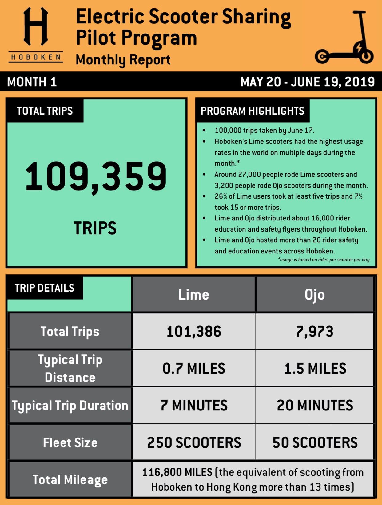 “Since the launch of the pilot program in May, OjO has had ongoing discussions with the mayor's office and city officials regarding safety, rider education and economics. OjOs have been adopted very quickly in Hoboken and provide an alternative mobility solution. We are encouraged by the ridership data and use cases in the first 60 days, and will continue to work with city officials to ensure the safety of the public and make adjustments to the pilot as necessary, including contract terms. OjO prides itself on collaborating with cities to find the best solutions for the market, general public and OjO riders, and Hoboken is no exception.”