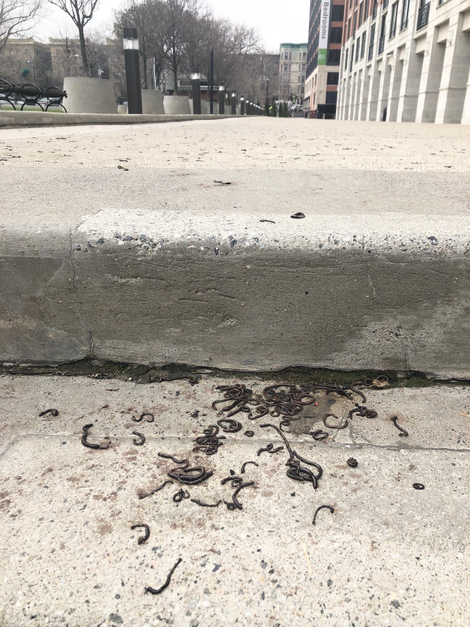 Worm Tornado? Has anyone ever seen anything like this? These were out this morning near Maxwell park in #Hoboken. Clearly worms come out after it rains but this is something I’ve never seen! Pc: my 2nd ward neighbor. #wormtornado pic.twitter.com/tWBOMzV5fK