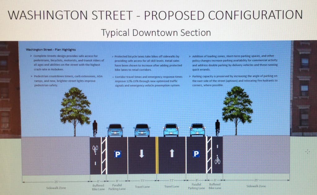 “Washington Street is Hoboken’s most dangerous corridor, with more than 300 crashes between 2013 and 2015, including a pedestrian fatality,” city administrators stated. “The final design incorporates complete streets principles and builds upon the conceptual design developed in 2014 through an extensive community planning process.”