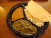 Both of these dishes came with a side of "gravy" which was a slightly sweet, tomato-based sauce with a peppering of onions and Indian spices. I didn't love the gravy, but it wasn't offensive either. The basmati rice that came with both dishes was perfectly fluffy and tasty, however. The best part, though, was the paratha—an Indian flat bread.