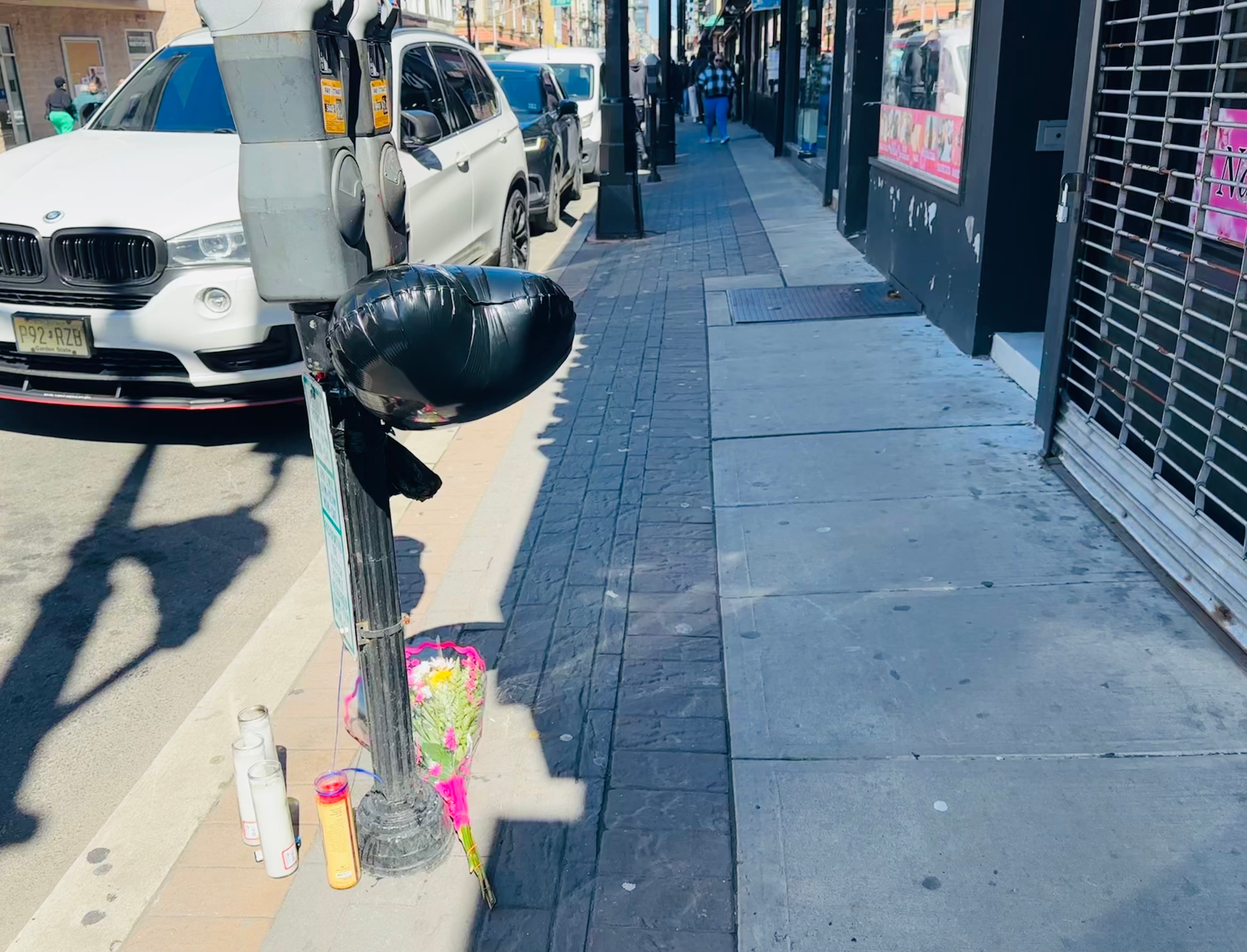 Candles, flowers, and a balloon were placed at the site of the fatal confrontation last week.
