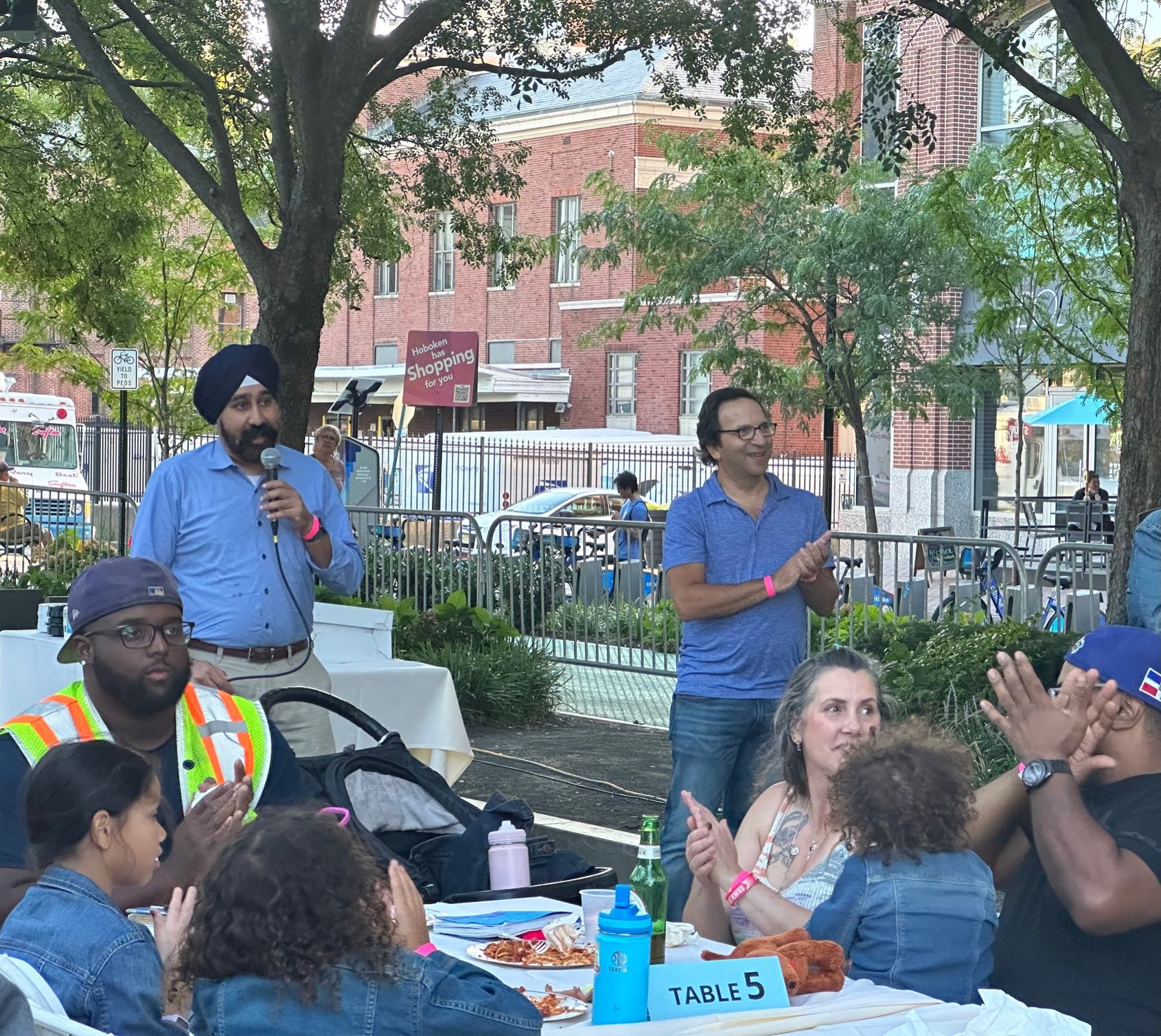 HOBOKEN, NJ — Hundreds of hungry Hobokenites flocked to the city's waterfront on a moonlit Thursday night to participate in the traditional Spaghetti Block Party Dinner. And it was extra-special, as Mayor Ravi Bhalla announced it would be the last one organized by Geri Fallo in her role as cultural affairs director, as she will retire this year.