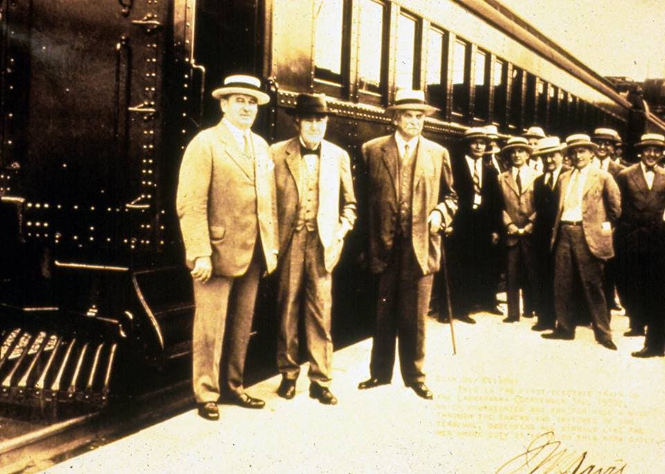 Photo caption: Thomas Edison, 2nd from left, introduces a Lackawanna railroad train in 1930.