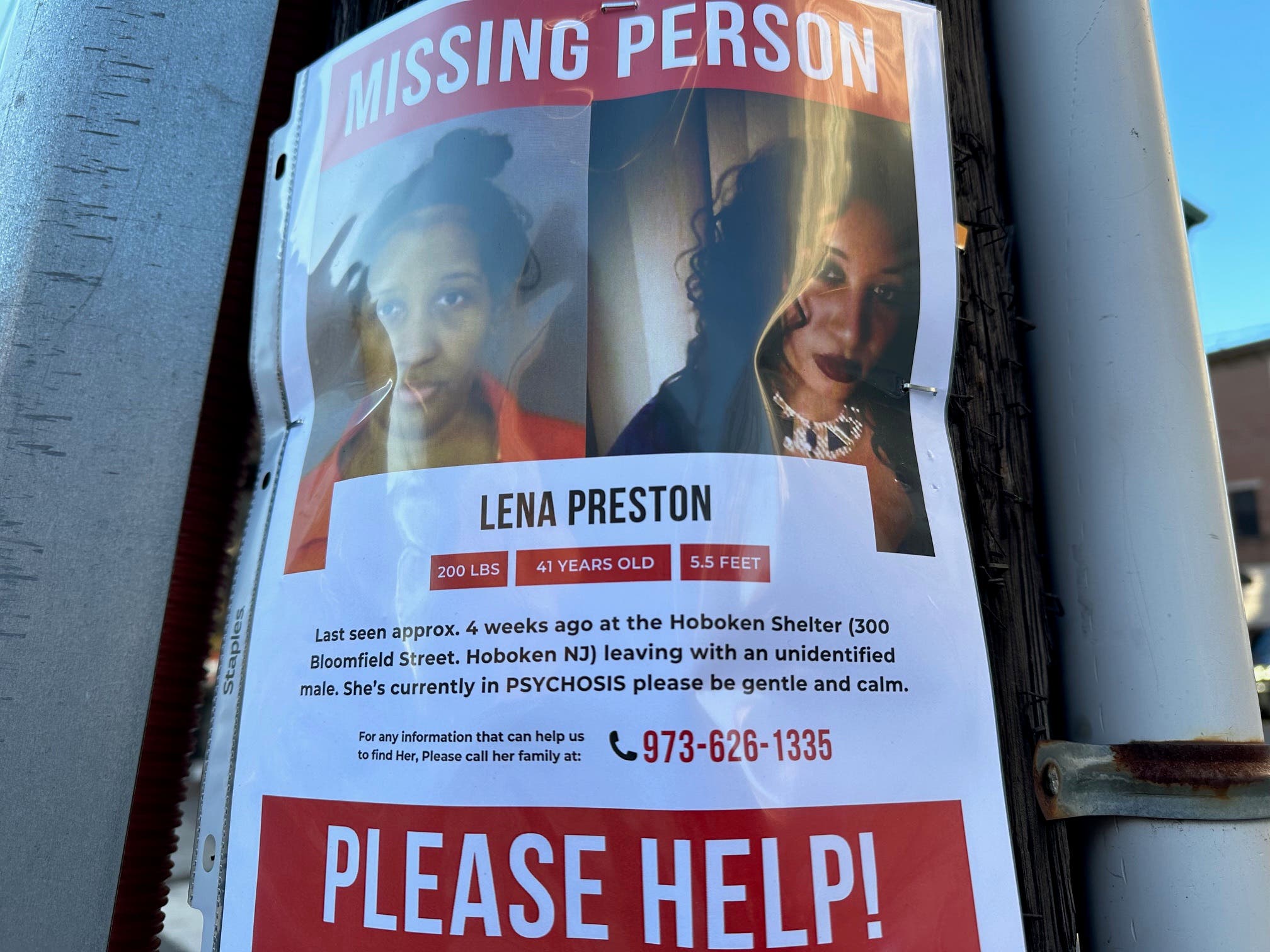 HOBOKEN, NJ — Nasir Preston grew up with five siblings in Newark, and now he's worried about his older sister, Lena, who hasn't been since since she walked out of the Hoboken Homeless Shelter a month ago.