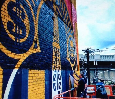 Shepard Fairey Begins 140-Foot Mural At Holland Tunnel