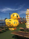 Photo 1: A giant duck sits on Pier 13 Hoboken on April 25, part of the publicity for the outdoor bar and event space’s spring opening.