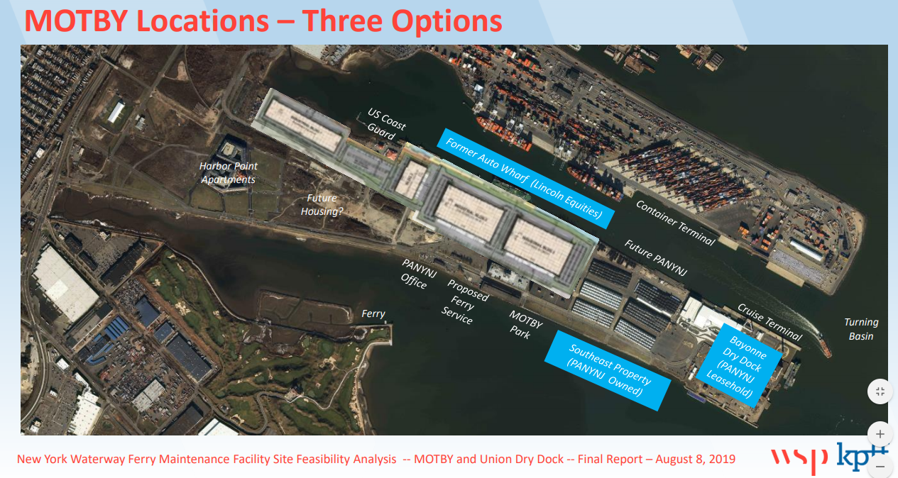 According to the study, ferries require specialized facilities that can’t be handled at larger shipyards like the Bayonne Dry Dock. In addition, most remaining undeveloped waterfront land in the area is targeted for commercial or residential use.