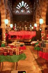 The august church provides a fitting atmosphere for a business that peddles the most defining symbol of the season. The vaulted ceiling, stone walls and stained glass windows of the venue compliment the festive glitter of the merchandise, making for a veritable cathedral of Christmas, even if there's an ever-present chill in the place.