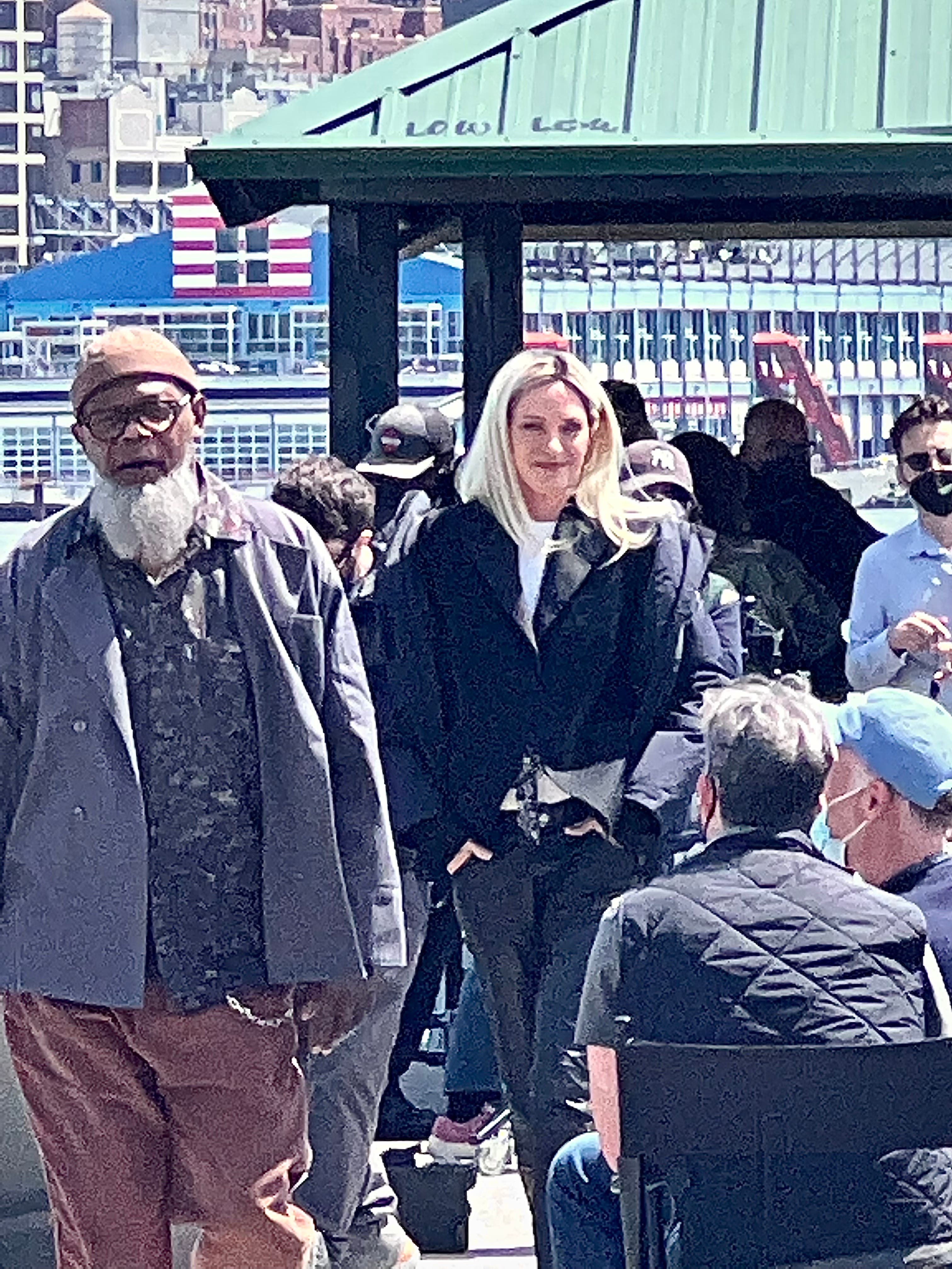 Thurman and Jackson, who had worked together in "Pulp Fiction," were spotted on the central waterfront Thursday morning.