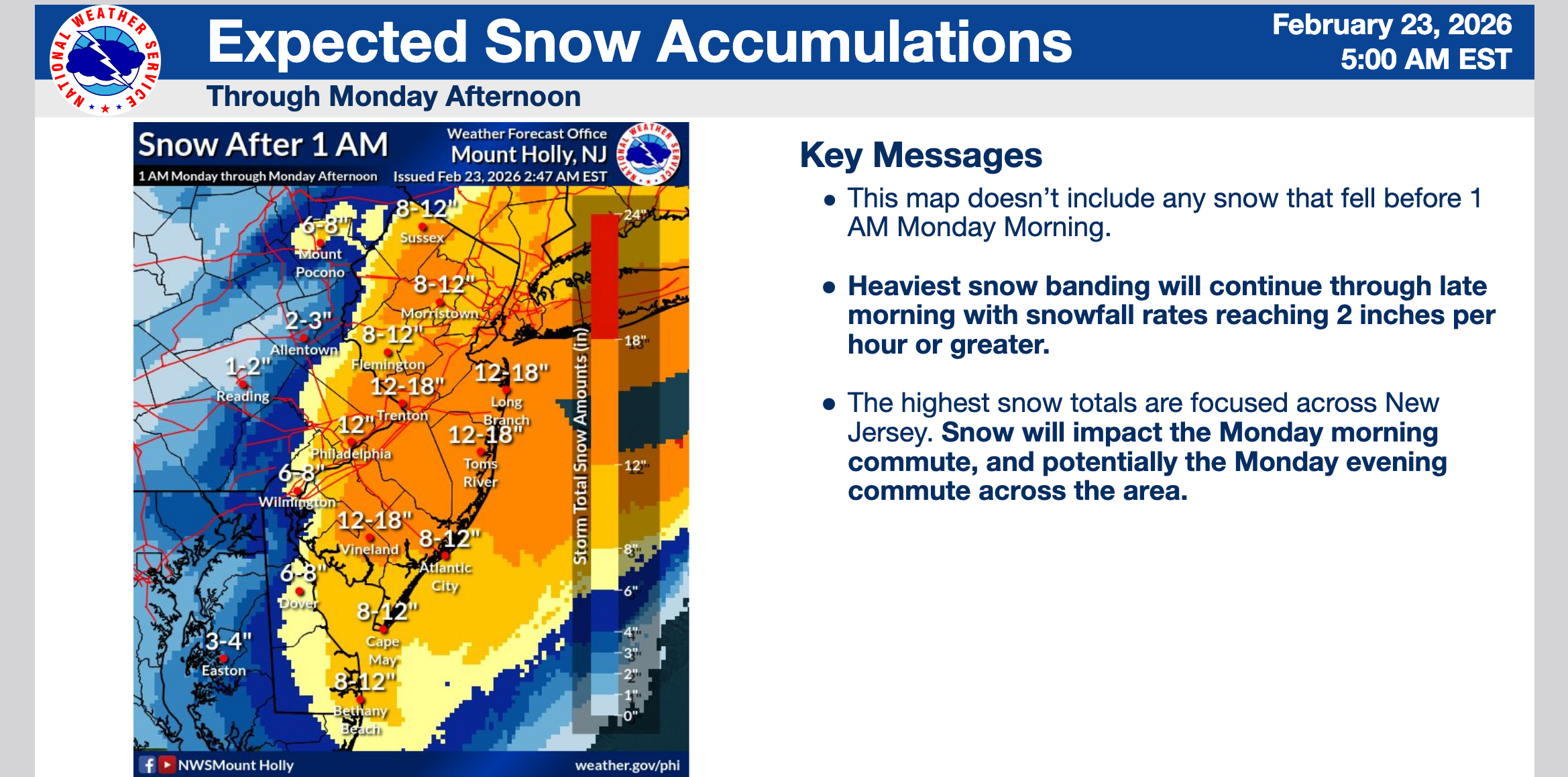 The city may get another 3-7 inches on Monday before 4 p.m., said the National Weather Service.