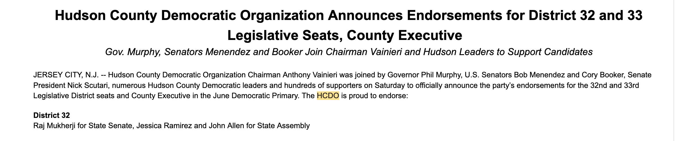 RELATED: Chair of Hoboken Democratic Party Resigns From County Machine, With Letter