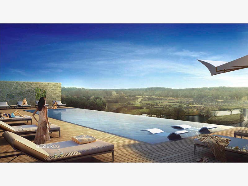 As Patch reported, the Holmdel Public Library moved a massive space on the Bell Works ground floor this winter, and the Holmdel Planning Board just granted permission for the construction of a 200-room hotel on the building’s roof. There will also be an infinity pool and bar on the roof; the top photo is a rendering of what the bar will look like.