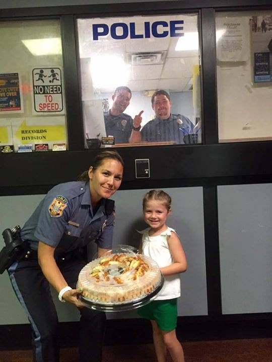 Adorable Photo of Girl Giving Hazlet Police Baked Goods