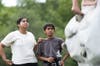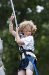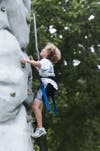 Three Parks employees were on hand to strap safety harnesses onto climbers. The brave ranged from small children to a grandmother in her 70s, said Kathy Casey, the head counselor for the Outdoor Adventure Dept. summer camp programs. The harnesses were secured to a hydraulic belay system which, Casey said, made it impossible to fall.