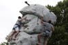 The 25-foot faux stone pillar had been carted in to generate interest in the Outdoor Adventures Dept. operating out of Thompson Park, which features a huge wooden climbing wall, low and high ropes, a zip line and more.