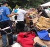 By 11 a.m., more than 500 people must have cycled through, said a policeman. Plenty were ferrying piles of stuff back to their cars, parked along the service road.