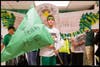 Satz's brand new mascot strutted around the gym like the rooster of the walk, flapping his wings to the roar of foot-stomping, cheering 7th and 8th graders. He flittered about mischievously. He raced up and down the bleachers.