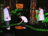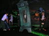 Obviously, one has to question the idea of mixing a family-friendly activity with décor that is the stuff of nightmares, but the whole thing is a frightfully good time, even for young ones. Maybe it’s all the neon-colored paint everywhere, illuminated by all those blacklights. We were advised to wear white so as to glow brightly, which we, and all of the “actual” monsters did. Also, the live DJ spinning old pop tunes really ups the fun factor. It’s hard to feel afraid when you’re bopping your head to Madonna or Bananarama.