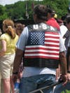 A sea of people clad in patriotic red, white, and blue lined the Memorial. They joined men and women in uniform as well veterans from Rolling Thunder in their distinctive emblazoned leather vests around the iconic sculpture and surrounding granite panels to remember and bear witness.