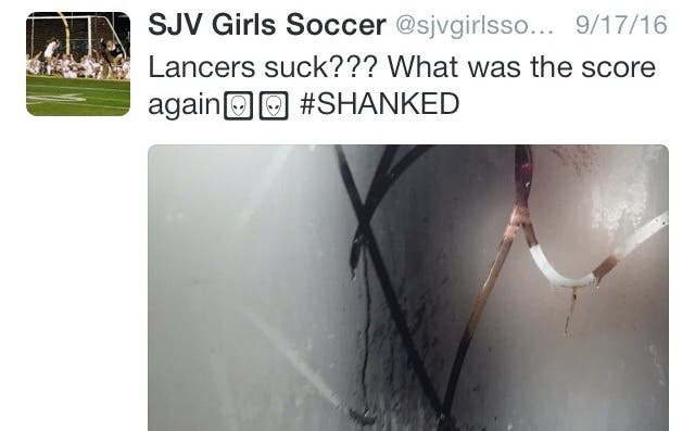 "The girls don't use an Urban Dictionary or prison slang. A shank is a shin bone and for two seasons the SJV Lady Lancers have been bringing their shanks to games," said Ruane. "To win. It's a slogan. For the team. Bring your game. Be ready to play. Be ready to win. Nothing more. Unfortunately, it was misinterpreted by a parent and now our girls/team have been labeled."