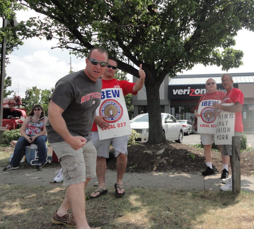 The workers are on the picket line at multiple locations in New Jersey, according to Bill Huber, president and business manager for the New Jersey-based IBEW Local 827. In Hazlet, workers are striking outside the Verizon store at Route 35 and Bethany Road, holding signs.
