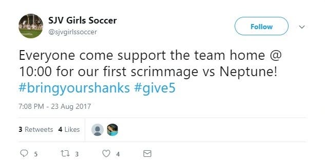 Hey @SJVHS @sjvgirlssoccer is this the sort of thing you want your school associated with? Hope an apology is forthcoming
