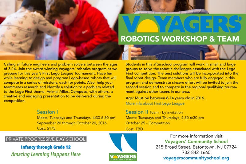 Maybe you are looking for an activity for your preschoolers or homeschoolers on Friday afternoons? Maybe you have a child who is creative, mechanical, technically savvy and interested in robotics? Bring your artists, engineers, explorers, actors, dancers and scientists to Voyagers' Community School. We are offering Astronomy, Printmaking, Zumba and Dance, Self Defense, Culinary Arts, Creative Writing, Photography, Model UN, Music and Movement, Robotics, Sci-Fi Odyssey and more.