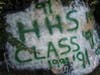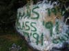 But on Tuesday it was clear '91 was in the house. The not only was the rock spray painted green and white with '91s everywhere, but layers of paint were laying on the ground, stripped away by the culprits.