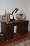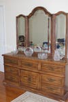 Living Sofas, Coffee Tables, Dining Room Table with 6 Chairs and China Cabinet, Kitchen Table with 6 Chairs, Bedroom Set, Girls White Bed, Desk, Recliner, Lamps, Stained Glass Lamp, Porcelain Chinese Figurine Statue, Hand Painted Satsuma Items, Tea Cup Collection, Office Items, Lionel Trains and Tracks some with boxes, Charlie Weaver 1962 Rosko battery powered Bartender with original box, Dolls, Raggedy Ann Dolls, Vintage Hobby Doll, Decorative Tiles and Dishes, Mirrors, China, Flatware, Glassware, Crystal, Antique Moroccan Ornate Filigree Lamps, Original Abstracts by Luzon - Impasto Oil Paintings, Oriental Artwork, Vintage Etched Cordial Sherry Glass Clear, Southwestern Pottery, Cigar Store Indian, Rugs, Wood Indian, Grill, Tools, Chrome Plated Steel Kitchen Racks, Vacuums, Records and lots more.