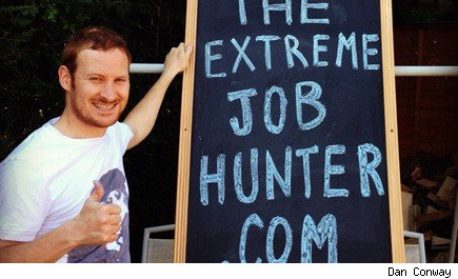 A Thousand Resumes, No Responses: He tried sending resumes and cover letters and is "near the thousand mark." No jobs and barely any responses. So, having a degree in advertising, he took a few weeks after the end of the baking business and planned an ongoing campaign that launched in April to gain attention from employers by branding himself "The Extreme Job Hunter." Conway says that all he wants is a chance to prove that he can do a job. "I need someone willing to take me on," he says. "The interview process doesn't showcase someone's skills properly or show whether they can do the job or not."