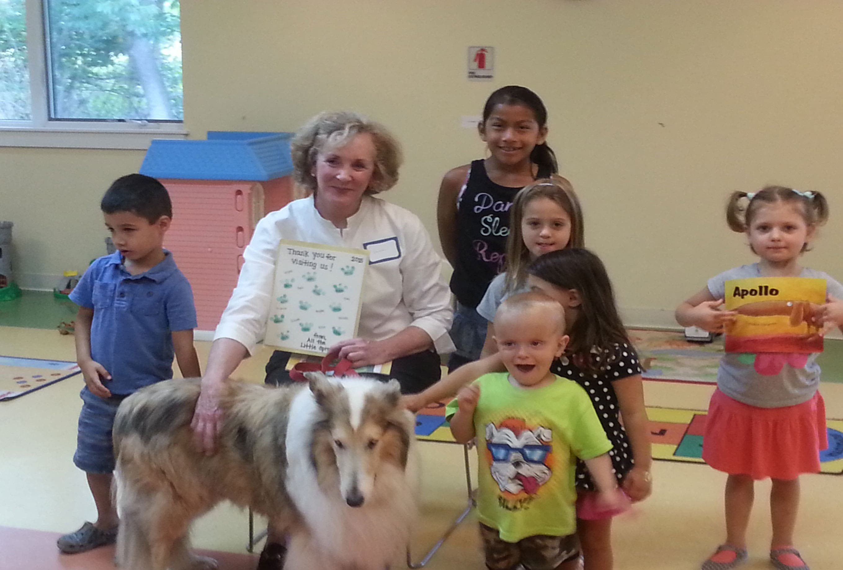 The Little Sprouts Early Learning Center hosted therapy dog, Sam.
