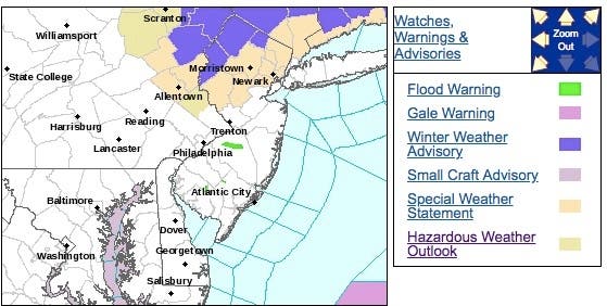 A winter weather advisory has been issued for three NJ counties. A hazardous weather outlook has been issued elsewhere.