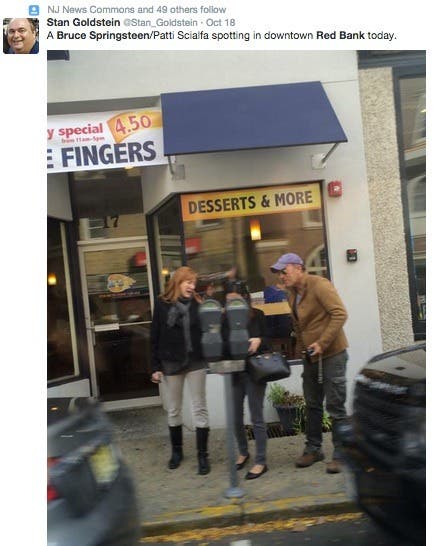 The preview was held Sept. 24 at Jack’s Music Shoppe in Red Bank. Fans filmed the event, though Springsteen doesn’t appear in the photo, according to The Asbury Park Press. He did appear on Twitter, photographed during a recent excursion in downtown Red Bank (see picture) on Oct. 18.