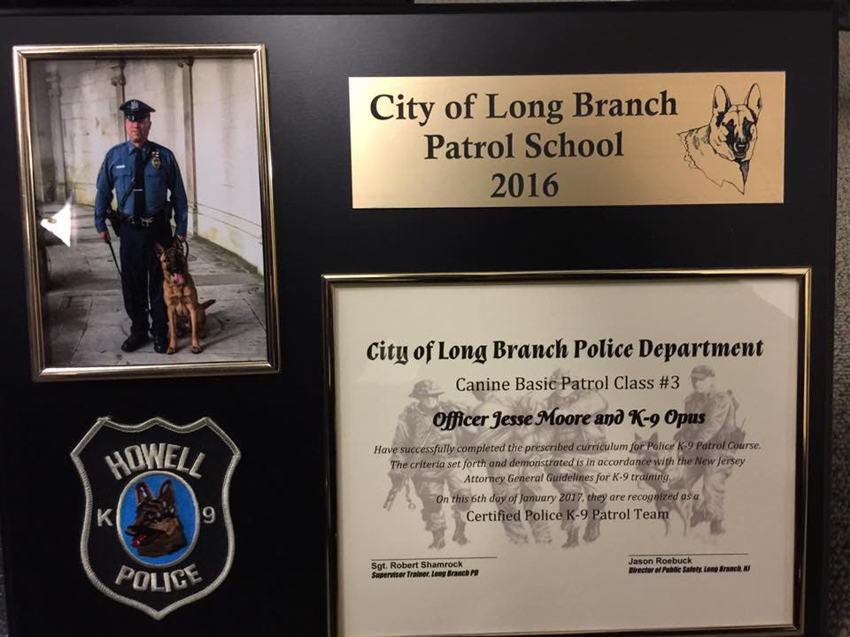 HOWELL, NJ — Two Howell Township Police Department K9 officers and their dogs have recently completed their patrol certification, Police Chief Andrew Kudrick announced.