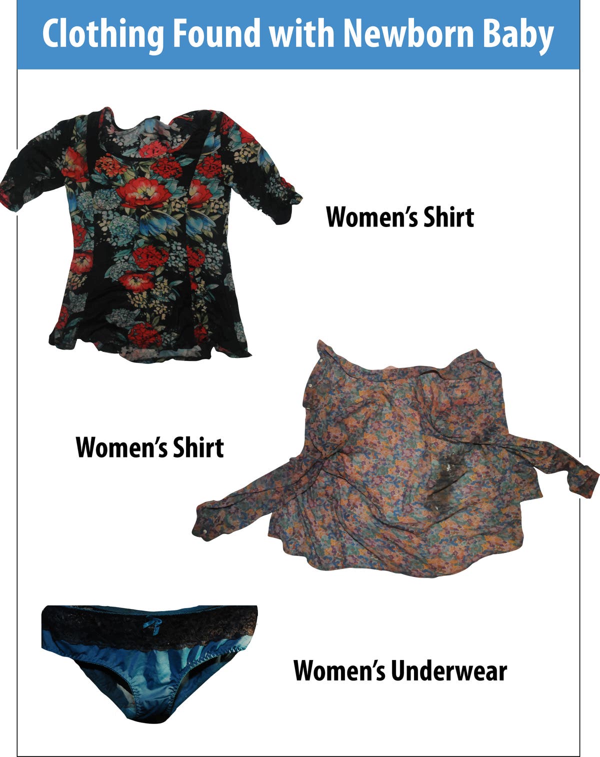 Along with the baby's body, there were two blood-stained blouses and a pair of underwear, along with a handbag, Gramiccioni said. Photos of the blouses were circulated in the weeks after the baby was found, but produced no leads, he said.