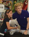 Young fans swoon as Australian singer signs autographs.
