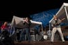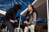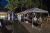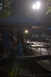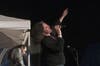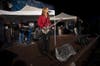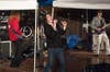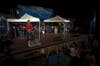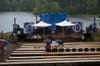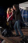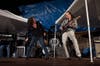 The band trudged on for about an hour, then determined that they had to call it quits because the rain was coming down too hard. Even with tents covering part of the stage, the performers and instruments were getting too wet, they said.