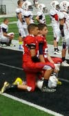 Justin Eisele #53, Peter Delaportes #16 and Michael Gould #49 from Jefferson were chosen by USA Football for this past weekend’s games. Peter Delaportes #16 a 7th grader this upcoming season, had a great week in OH. Peter Delaportes #16 QB lead the USA Red team by throwing a 22 yard TD for the first Touchdown of the game. Another 7th grader, Justin Eisele #53 Defensive End was chosen by the coaches to hold the USA Flag before the game for being the “hardest worker and best character” during the week. Justin Eisele #53 helped lead the USA Defense in only allowing 4 first downs. Peter and Justin Eisele USA RED team won 21-2 Over the USA White Team in the 9am game. Mike Gould another Jefferson player who will be an 8th grader for this upcoming season, is another player that earned recognition during this past week. Mike Gould #49 was chosen Captain for the USA Red team in the 10:30am Game. Mike Gould #49 game ending interception sealed the victory for USA Red 21-7 over USA Blue.