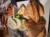 The hummus platter was very small. While the hummus—a roasted garlic, lemon and tomato spread—was better than average, there wasn't enough to dip it in. It comes with four large cucumber slices and a ton of fried pita. Fresh pita, or more fresh vegetables, would've been much better.