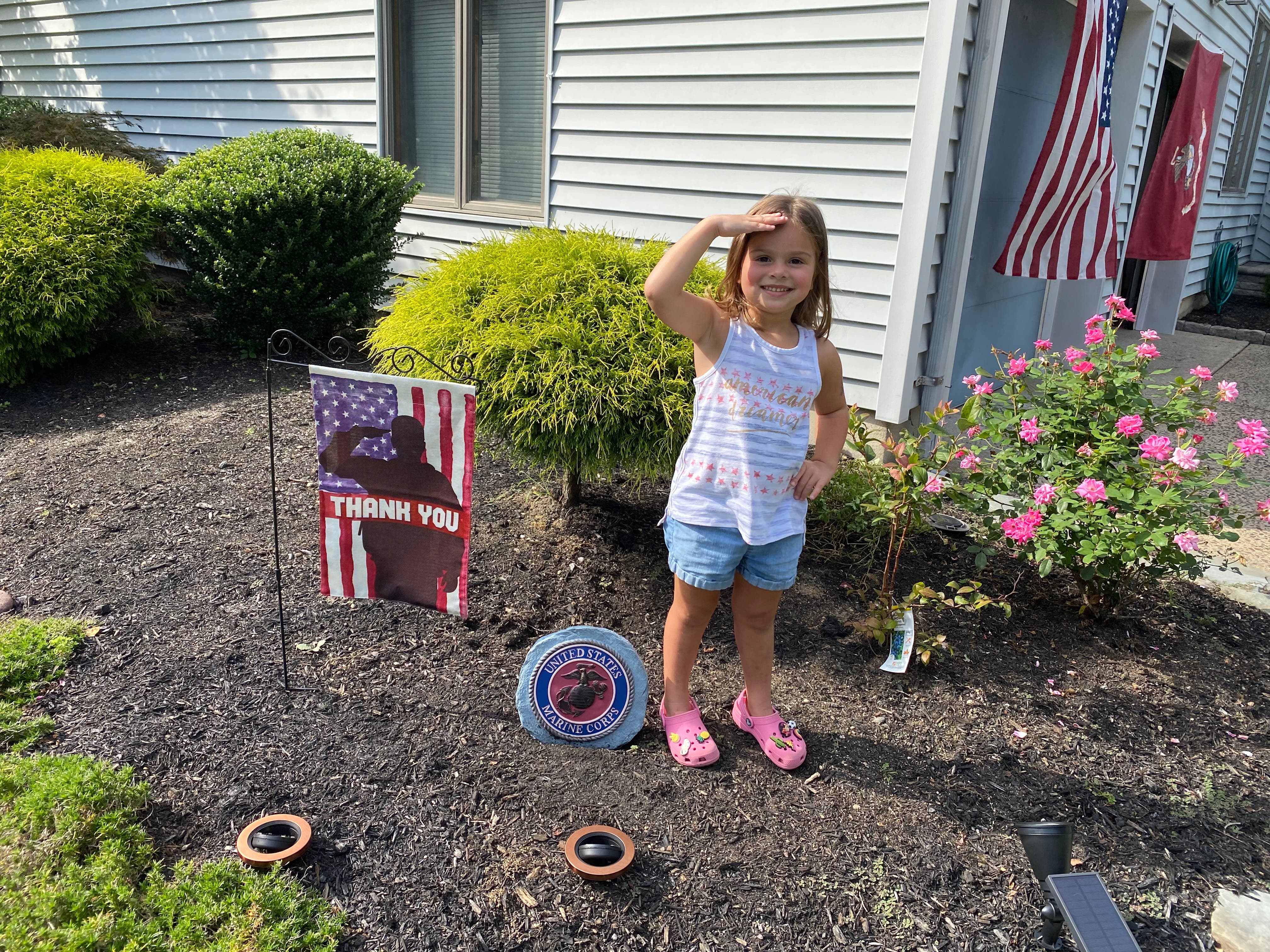 Known for being the "military home" on Lanoka Harbor's Oxford Road, residents may know the Morganos by their summer decor — the U.S.-themed memorabilia, signs and the giant pre-lit American flag hanging on the front door of the home the couple shares with their three kids. Tommy just took the flag down after Labor Day.