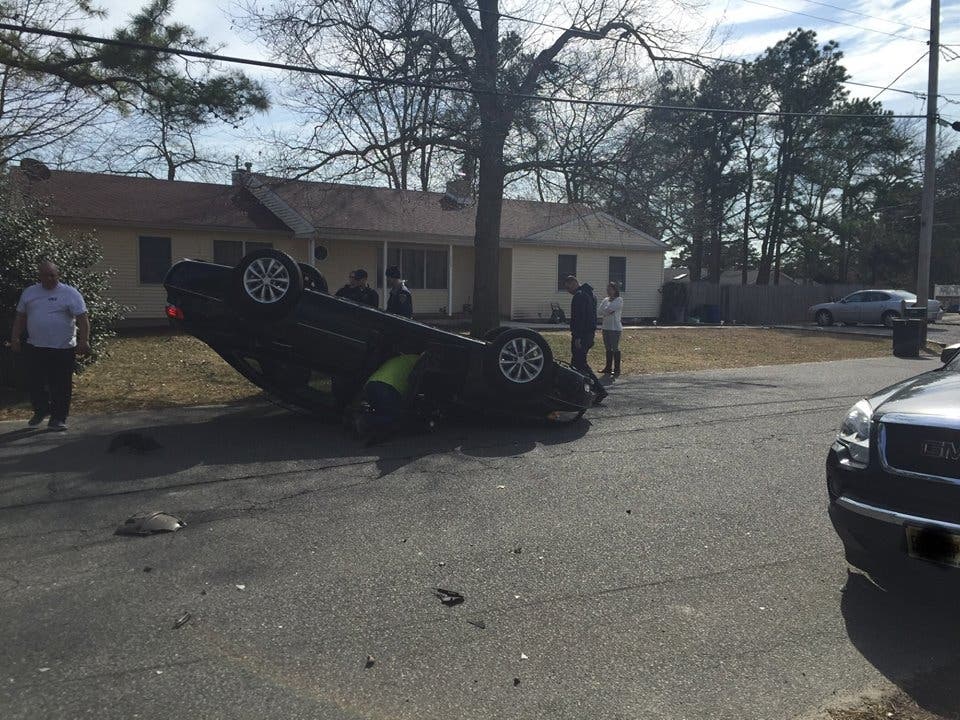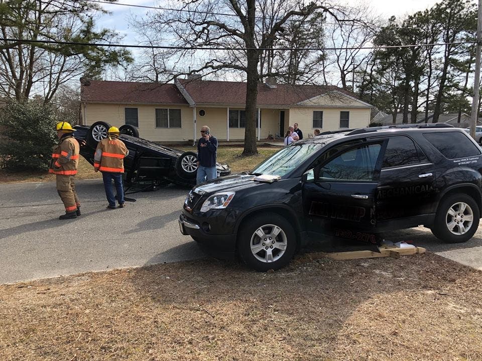 An elderly man's vehicle overturned Thursday after an accident on Parkside Drive in Lacey, police said. The unnamed 76-year-old man accidentally grazed the side of a parked vehicle while driving north, causing his car to land on its roof, said Lacey Police Captain Patrick J. Ganley.