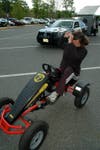 LBI police came to Lacey Township High School for a demonstration on drunken driving and how it impairs driving ability. They used two small race courses—one with a powered go-cart that the police officer controled with a remote and the other with a pedal-powered cart.
