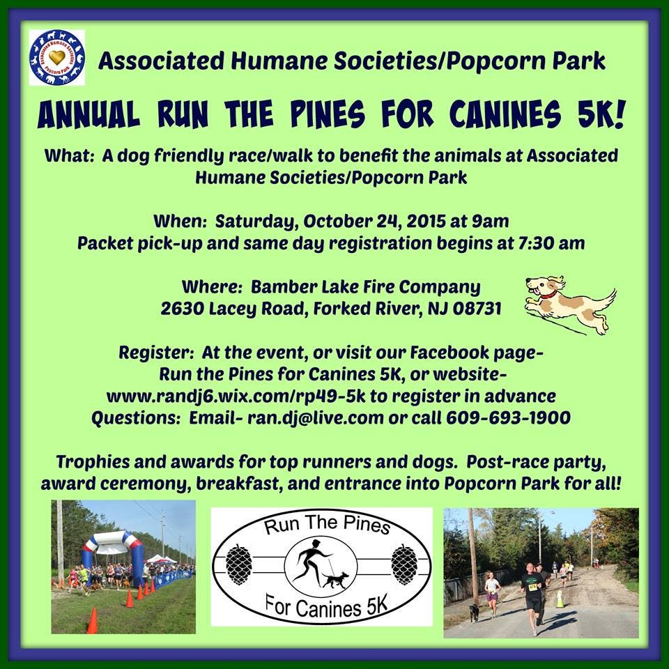 The popular ”Run The Pines For Canines 5k” race is on tap for Saturday. Participants can register starting at 7:30 a.m. at the Bamber Lakes Fire Company at 2630 on Lacey Road in Forked River