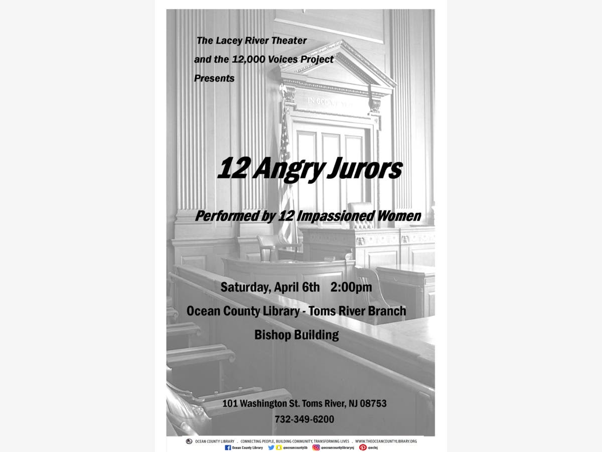 12,000 Voices: 12 Angry Men Performed by 12 Impassioned Women presented Saturday, April 6 at 2 PM @ the Bishop Annex of Toms River Library